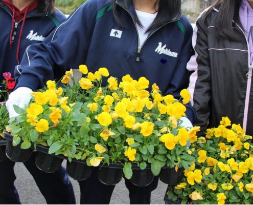 この日は1年2・7組の生徒で、およそ1000株の花の苗を植えました。
