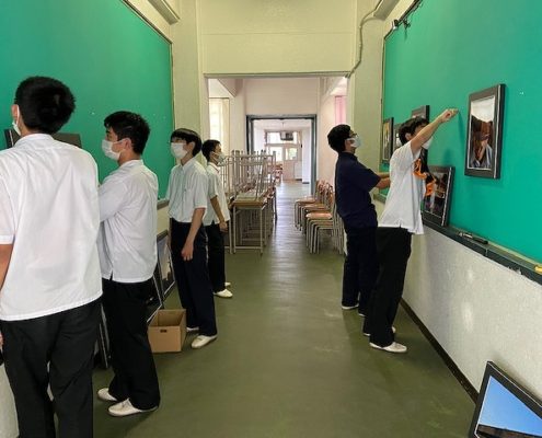 7月9日(金)に、岩倉市立南部中学校「ふれ愛ギャラリー」にて作品の入れ替えを行いました。夏らしい爽やかな作品や高校生活が感じられる作品を展示しています。